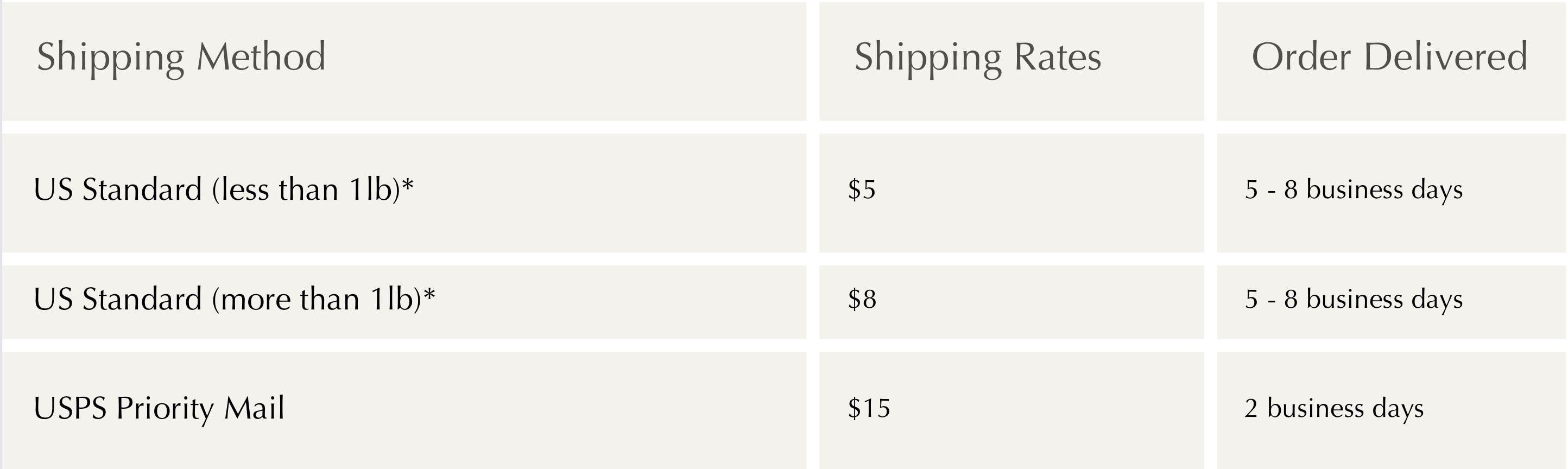 We ship any order over $100 free in the continental U.S. (excluding Hawaii and Alaska). Your order should be received in 5 - 8 business days through USPS First Class Priority (Standard) shipping. If you need your order expedited, please select and pay for USPS Priority Mail to arrive within 2 business days.Â