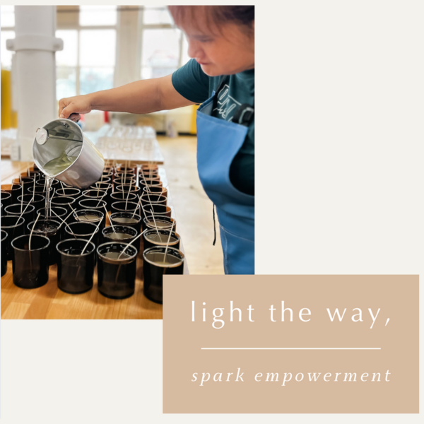 Each candle is hand-poured by artisan women refugees in the U.S., creating sustainable livelihoods and offering a pathway to brighter futures.