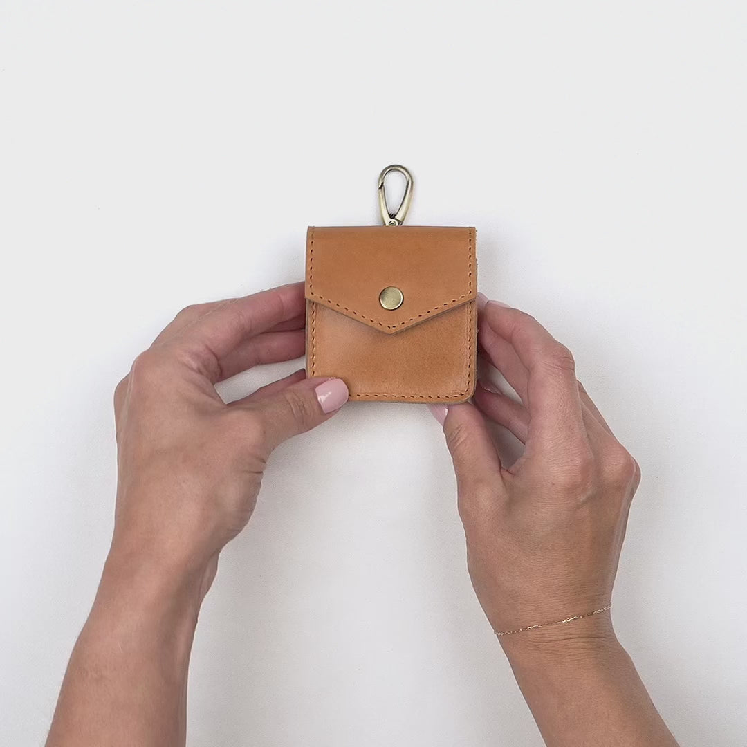 Additionally, it features a secure brass clip that allows for easy attachment to your backpack, purse, or luggage. Whether you're commuting to work, running errands, or traveling, you can keep your AirPods within easy reach.