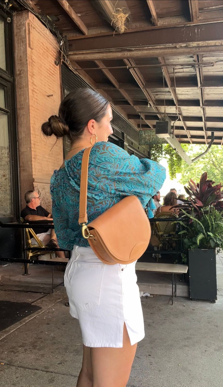 First and foremost, this leather is soooooo beautiful in person and holds up so well. I ordered this bag with the long leather strap and wear it as a crossbody and it is my GO-TO! The outside pocket is perfect for my phone and there is a spacious interior. When I need to dress up, I just use the shorter strap for a shoulder bag look. I get compliments on this bag all the time.