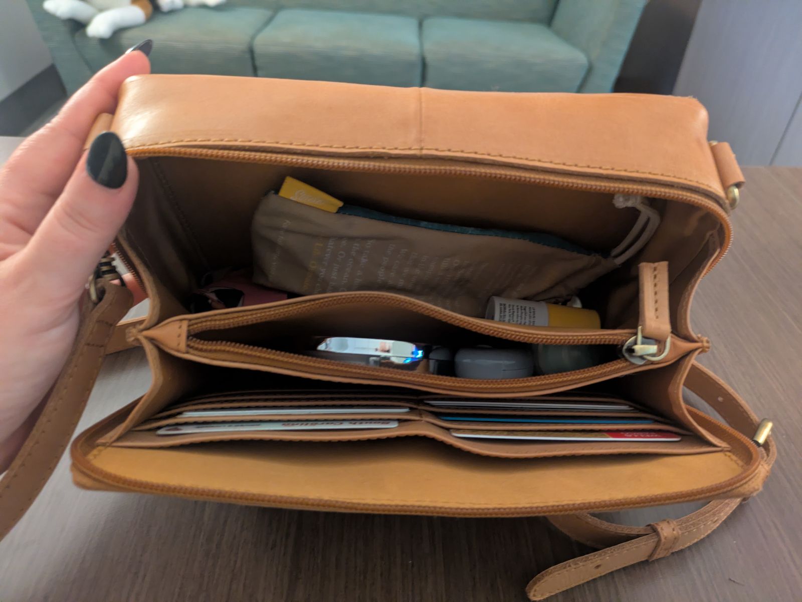 This stylish crossbody bag is designed to enhance organization and security. With an accordion-style interior, you can effortlessly store your essentials and access them with ease. Plus, the built-in wallet compartment and zippered divider pocket ensure that your cards, cash, and small valuables are always safe and secure.